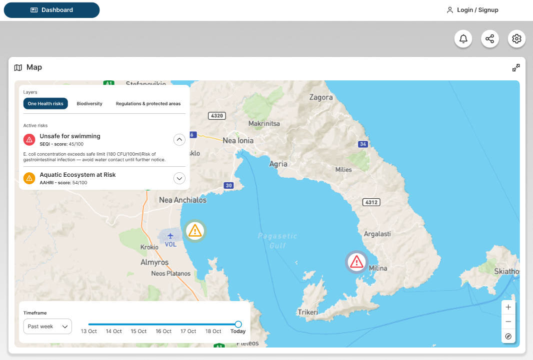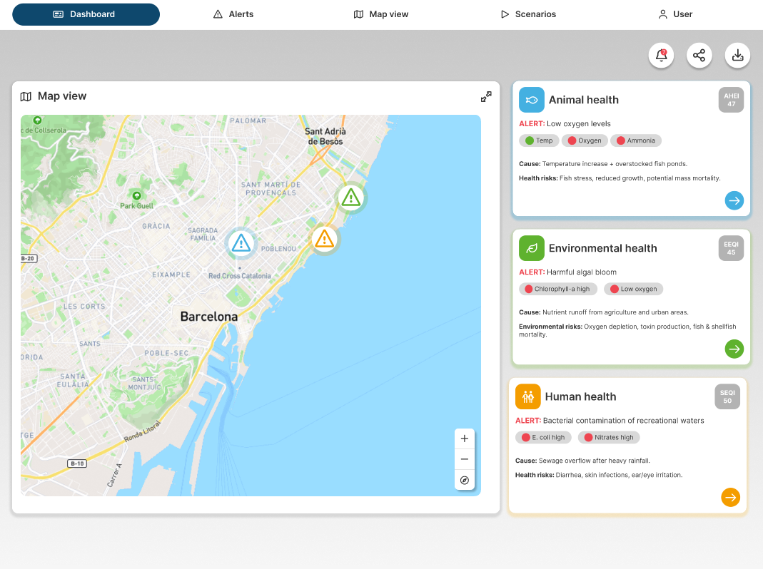 ENHANCE aims to leverage this One Health approach, combining AI technologies, Copernicus satellite imagery, and citizen science. The project will provide coastal stakeholders with a user-friendly toolkit to address human, animal, and environmental health challenges together in a holistic way. Alerts help users make decisions about coastal health problems, such as for example "where it is safe to swim". Dashboards will be customized for different stakeholders, from surfers and divers to coastal managers, researchers, and scientists.