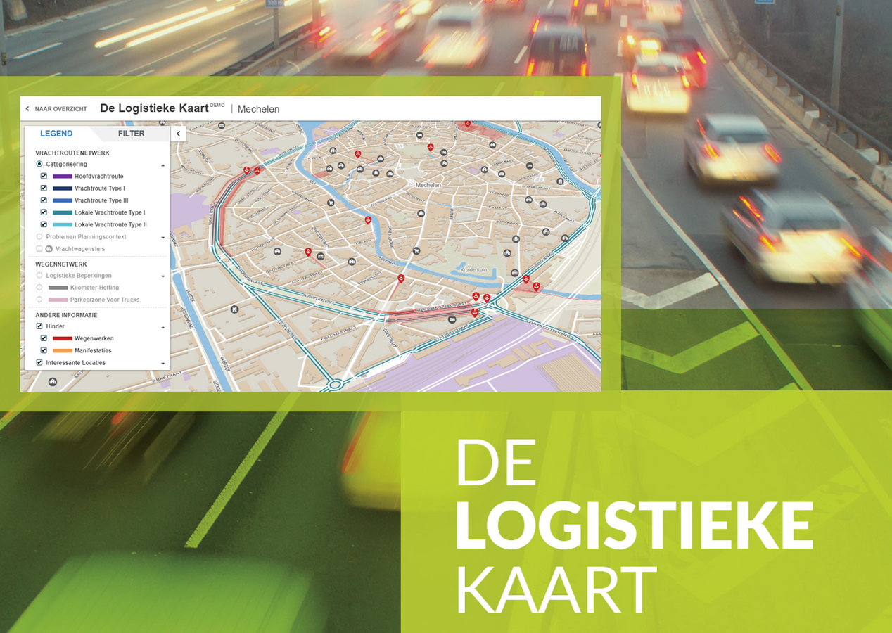 In eerste instantie worden data ontsloten via de interactieve kaartapplicatie: www.delogistiekekaart.be. Daarnaast is het mogelijk om via API’s de achterliggende database te consulteren en de data eenvoudig te gebruiken in andere applicaties zoals routeplanners. Dat is een opstapje naar de verdere ontwikkeling van toepassingen op het vlak van Smart Mobility. Wegwerkzaamheden en/of manifestaties (die in GIPOD bekend zijn) maar ook conflictpunten en andere logistiek relevante informatie (tonnagebeperking, parkings, gelegen langs school, categorisering vrachtroutes) worden eenvoudig raadpleegbaar en samengevat per gemeente.